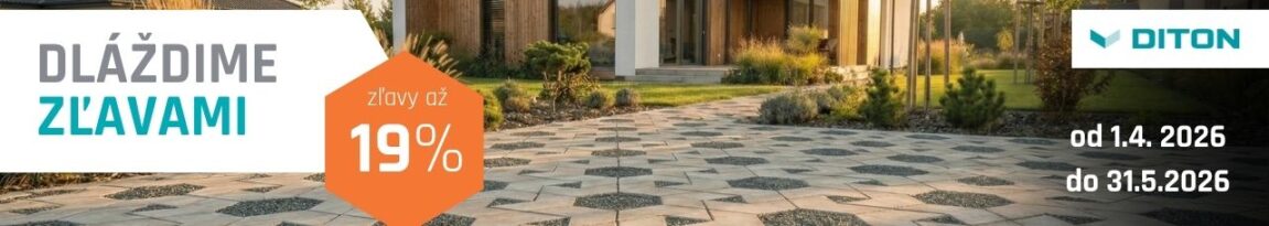 Plánujete novú terasu, prístupovú cestu alebo štýlové oplotenie? Práve teraz je ten najlepší čas. Využite našu tradičnú akciu Dláždime so zľavami a zaobstarajte si betónové výrobky DITON za výnimočné ceny.