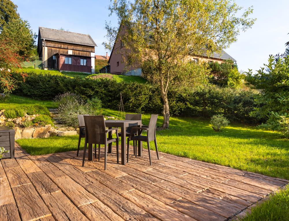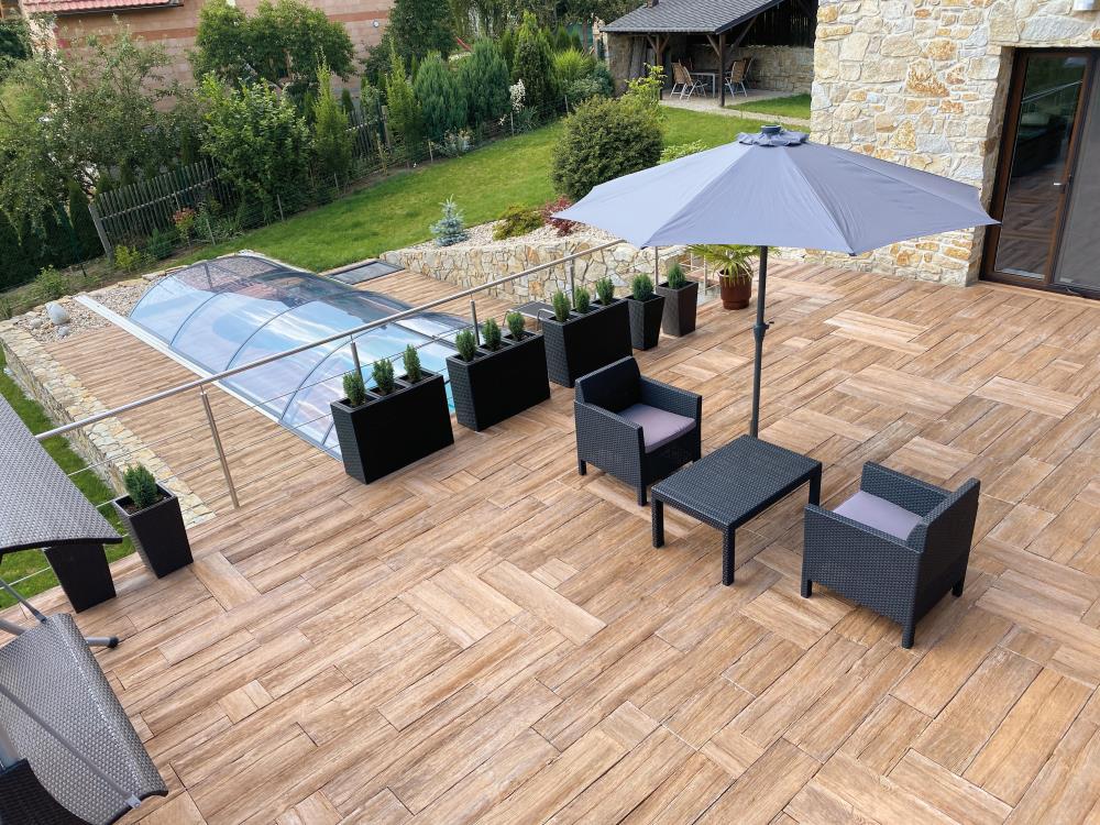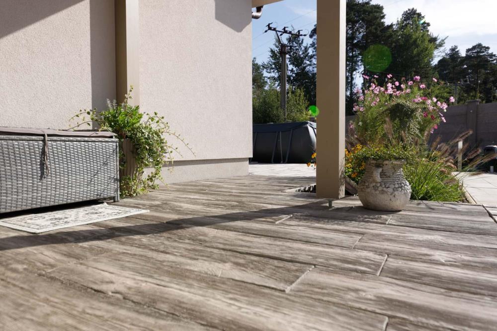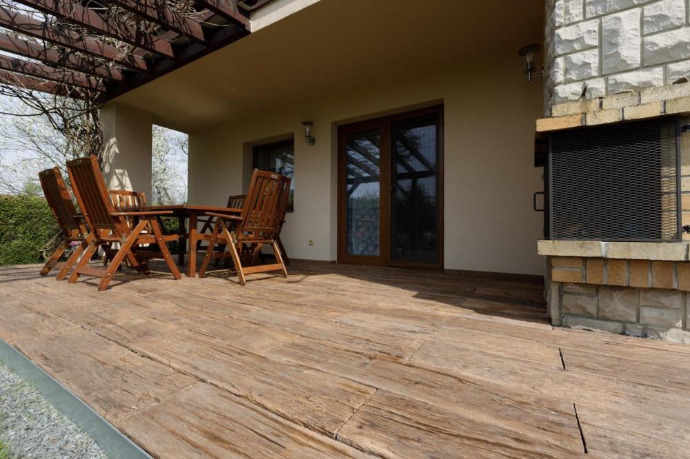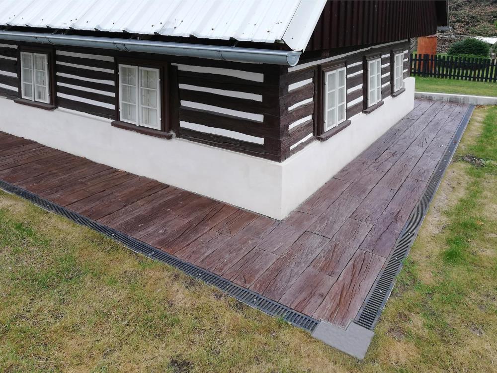 - méně namáhané zpevněné plochy jako jsou terasy, okolí rodinných domů, zahradní chodníčky apod.