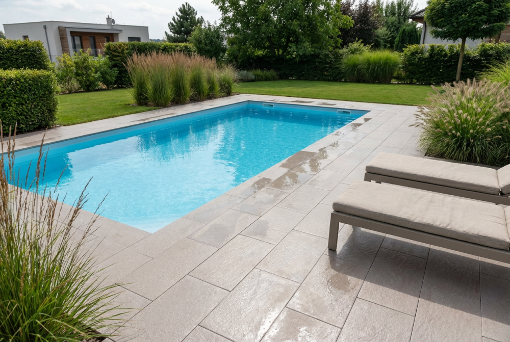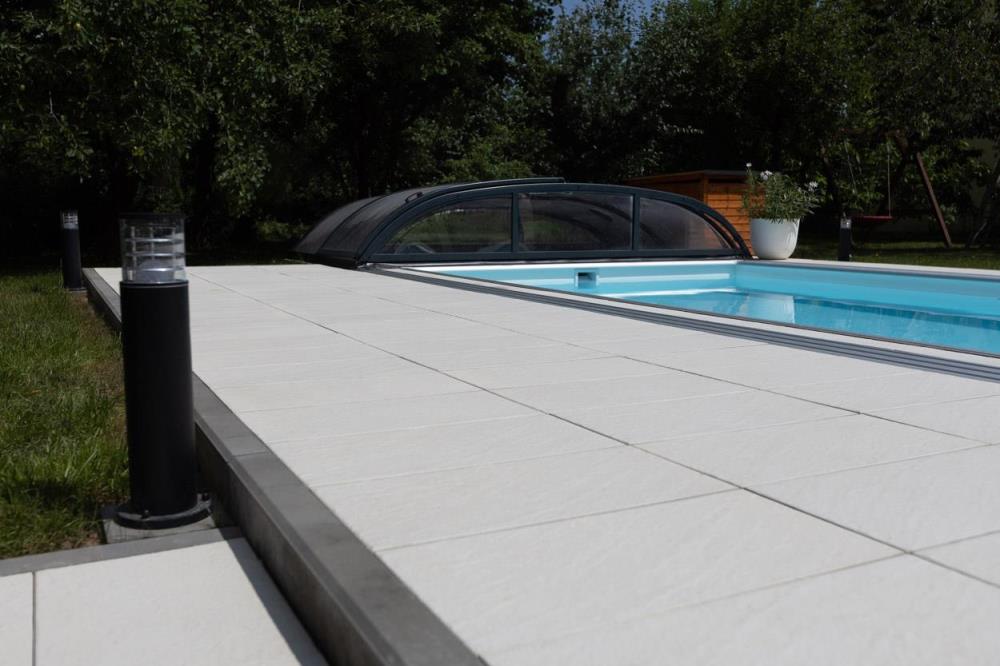 - méně namáhané zpevněné plochy jako jsou terasy, okolí rodinných domů, zahradní chodníčky, pěší stezky, zóny a náměstí, okolí bazénů, ploché střechy objektů apod.