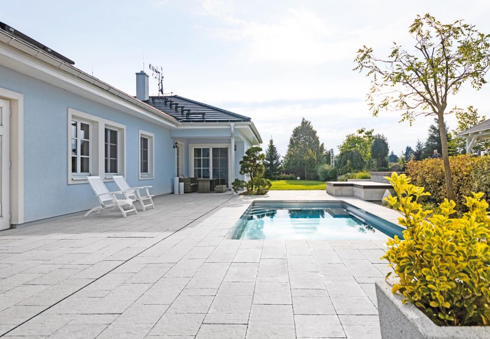 Betónová dlažba CARCASSONNE vás zaujme jemne nepravidelným štruktúrovaným povrchom, ktorý pripomína plochy lámaného kameňa. Môžete si vybrať z troch odtieňov colormixov a ďalších piatich odtieňov dlažby, ktoré odkazujú na geologický pôvod. Okrem tmavého odtieňa BAZALT ponúkame aj prémiové odtiene bielej, pieskovej, zemitohnedej a zrnitý povrch pripomínajúci žulu v odtieni GRANIA. Vďaka štyrom rôznym veľkostiam dlaždíc jednoducho vytvoríte jedinečný priestor kdekoľvek. Betónová dlažba CARCASSONNE sa perfektne hodí k ďalším produktom radu MURÁNO, s ktorými ju môžete jednoducho farebne kombinovať. Táto dlažba je ideálna nielen na okolie domu, ale aj na záhradné terasy.
