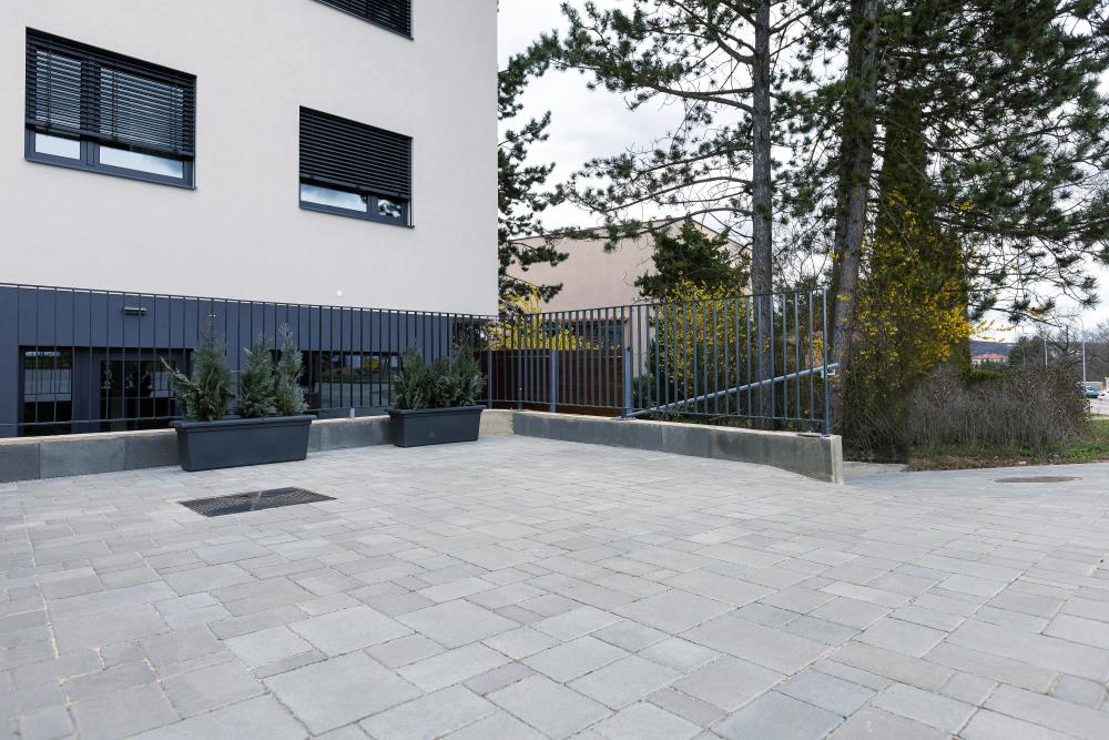 - zpevněné plochy jako jsou chodníky, terasy, okolí rodinných domů, pěší stezky, zahradní chodníčky, nájezdy do garáží apod.