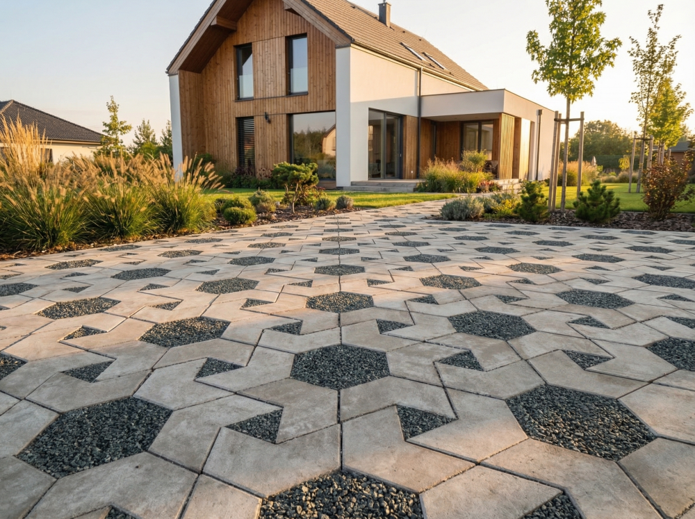Betónová dlažba DITON OMNIA predstavuje výnimočne variabilné riešenie pre súkromné aj verejné priestory. Jediná dlaždica ponúka takmer neobmedzené možnosti skladby – na výber je až 42 typov vzorov a nespočet farebných kombinácií. Vďaka tejto flexibilite ľahko vytvoríte originálne plochy od príjazdových ciest cez terasy a chodníky až po mestské priestory. Špeciálna skladba s rôzne veľkými voľnými plochami umožňuje realizáciu pojazdných zatrávňovacích plôch, ktoré podporujú vsakovanie vody a prirodzené začlenenie zelene. Dlažba OMNIA sa tak skvele hodí aj do prírodných záhrad, parkov alebo verejných priestranstiev, kde je kladený dôraz na ekologiu a dizajn. Vymývané povrchy v odtieňoch bianco a nero navyše zaisťujú protišmykové vlastnosti a dlhú životnosť aj pri vyššom zaťažení.
