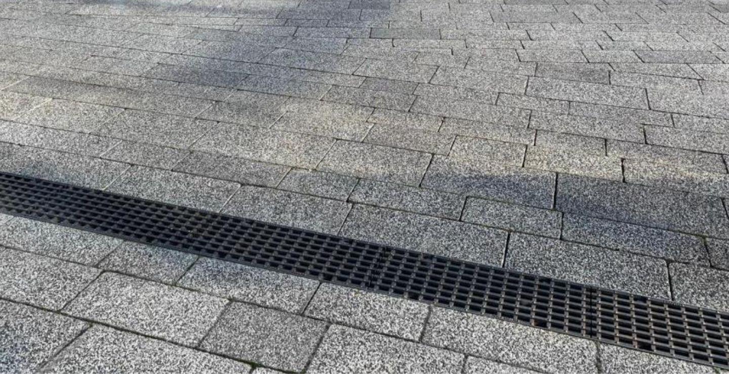 ** Mezi LITINOVOU MŘÍŽKOU a BETONOVÝM ŽLABEM je implementovaná tlumicí polyuretanová vložka.