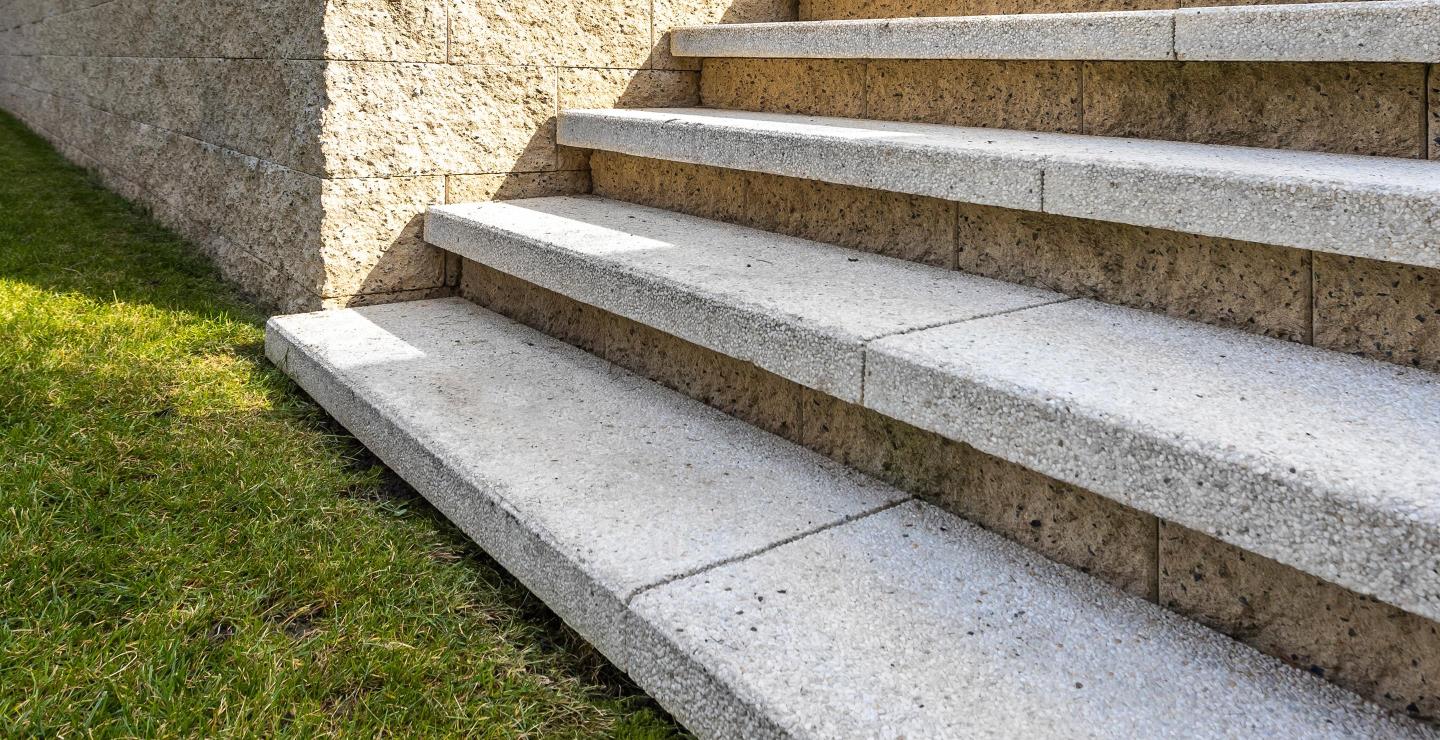 Konštrukčné betónové prvky na prekonanie výškových rozdielov v teréne či pri dome v podobe schodiskových dosiek a podestových dosiek ponúkajú elegantný spôsob riešenia schodísk. Poslúžia na vybudovanie úplne nového schodiska, ale dokážu nahradiť aj pôvodné riešenie pri rekonštrukciách – napríklad elegantným obložením pôvodného materiálu. Na výber je bohatá škála farebných variant a typov povrchov – od prírodných, tryskaných, cez vymývané kamienkové, až po špeciálne s jemne zrnitou štruktúrou. Tieto povrchy sú k dispozícii aj pre konkrétne typy dlažieb, takže môžu nadviazať na okolie v jednotnom vizuálnom štýle. Máme riešenie aj v situáciách, keď je potrebné inštalovať plné schodiskové stupne alebo bloky. Schodiskový stupeň plný v podobe trojbokého hranola rovnako ako schodiskový blok v podobe kvádra sú na hranách opatrené malou praktickou fazetkou, ktorá zabráni štiepeniu hrany.