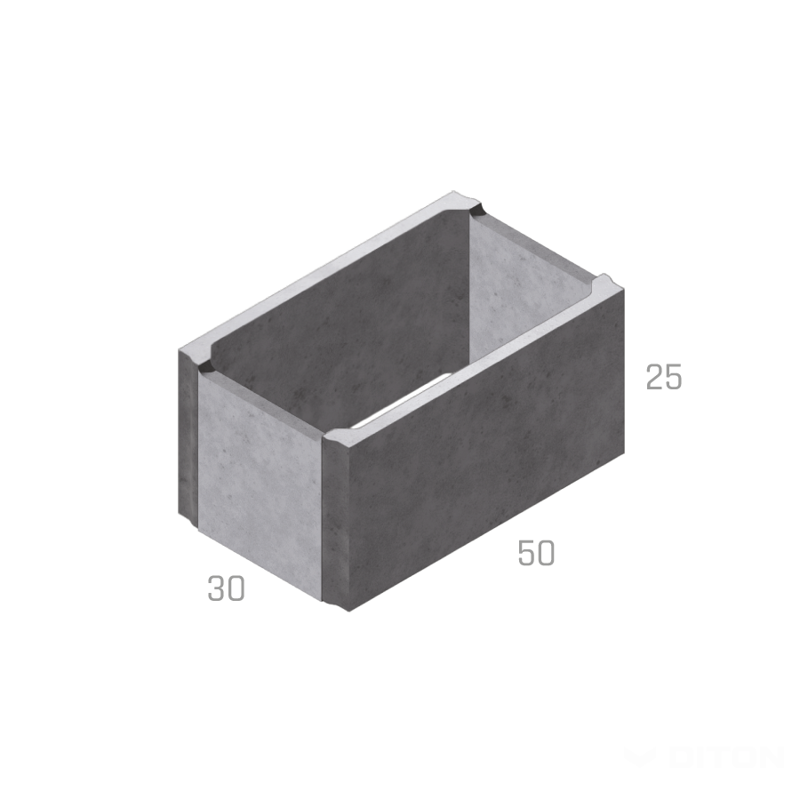 V tabulce spotřeby zálivkového betonu pro daný typ ztraceného bednění najděte potřebný objem betonu, v tomto případě je to 25 litrů (0,025 m3) pro jednu tvárnici. Vynásobením počtem tvárnic dostaneme spotřebu zálivkového betonu na 1 m2.