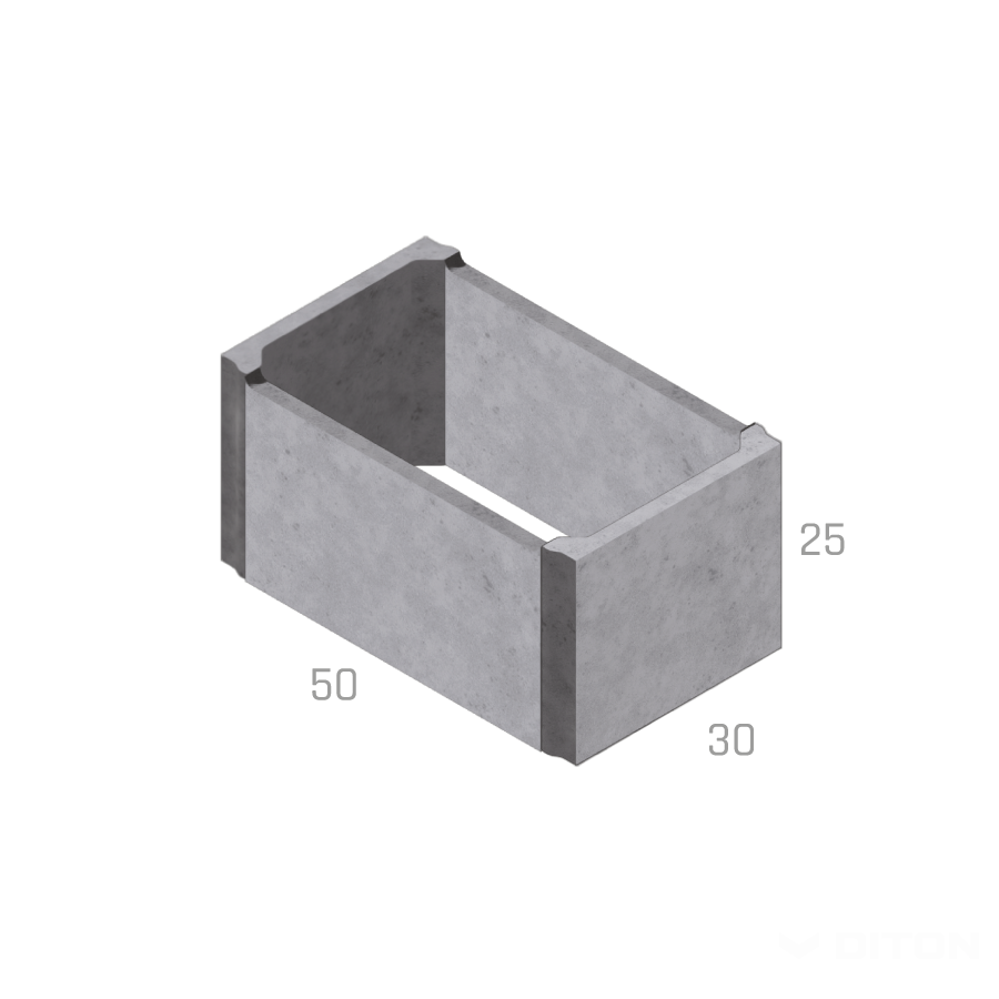 V tabulce spotřeby zálivkového betonu pro daný typ ztraceného bednění najděte potřebný objem betonu, v tomto případě je to 25 litrů (0,025 m3) pro jednu tvárnici. Vynásobením počtem tvárnic dostaneme spotřebu zálivkového betonu na 1 m2.