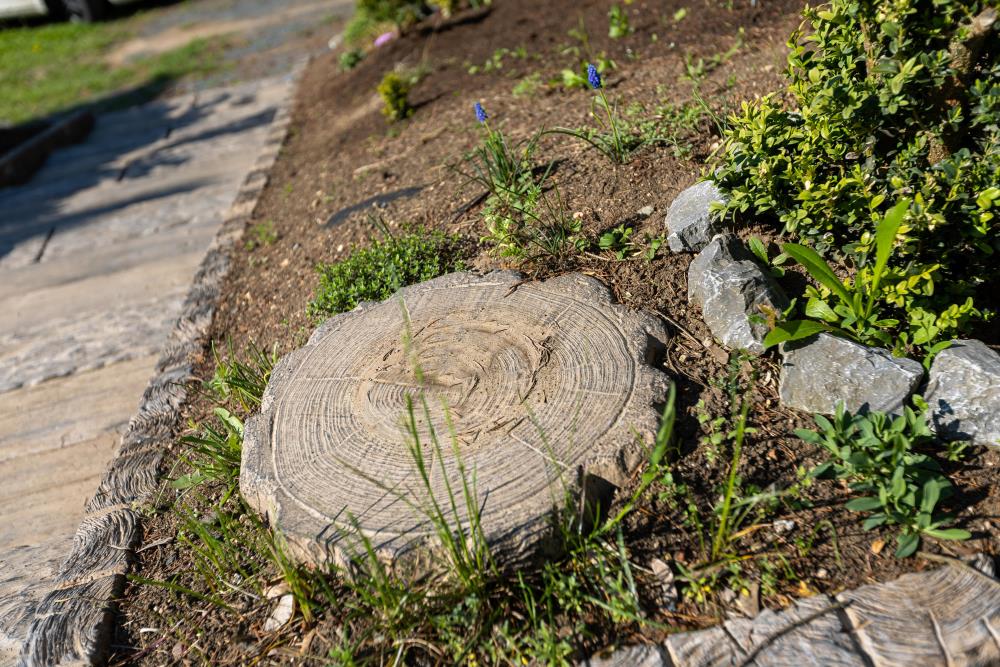 Pre záhrady a exteriéry okolo domu, kde boli použité dlažby, ploty alebo doplnky vo vyhotovení NATUR PATINA alebo VZOR SMREK z programu IMITÁCIE DREVA, sú predurčené NÁŠĽAPY KRUHOVÉ. Pomocou nich je možné ľahko v teréne budovať rôzne tvarované cestičky a chodníčky pre chôdzu trávnikom či osádzanými plochami, krytými mulčom, drobným štrkom či okruhliakmi. Ľahké usadenie nášľapov a výsekov do plochy bez potreby budovať podkladové vrstvy je ďalšou výhodou tohto riešenia.
